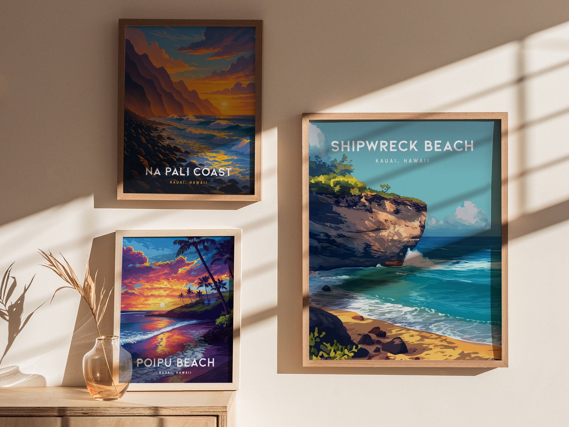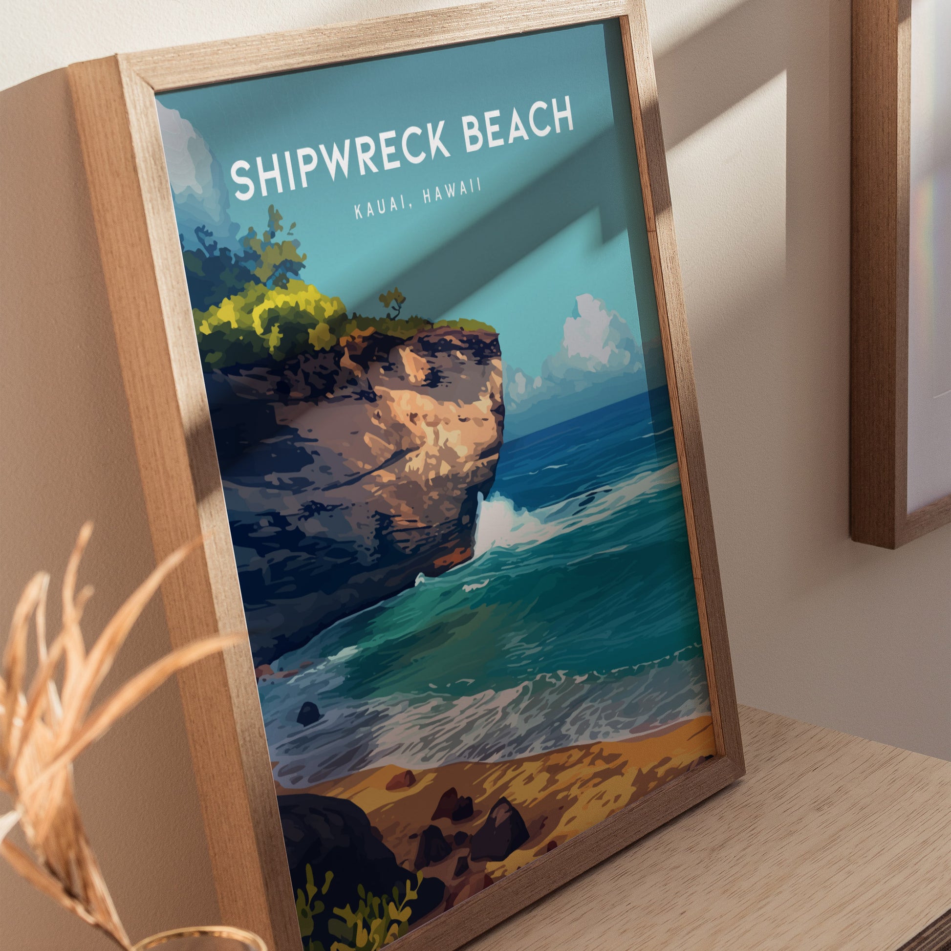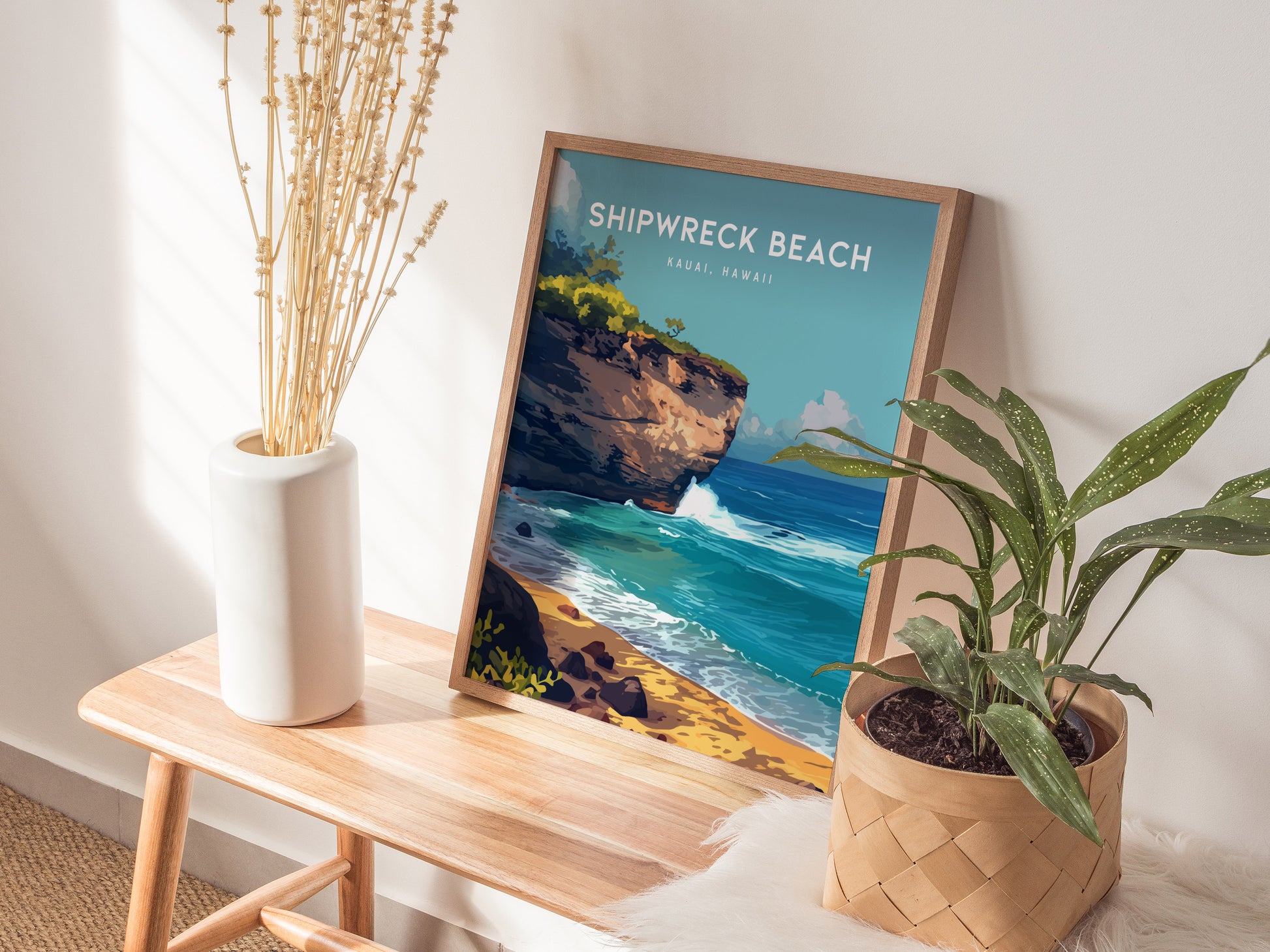 カウアイ島の荒々しい海岸線を、このシップレック ビーチのプリントで称えましょう。このプリントは、島で最も写真映えする海岸線への印象的なトリビュートです。