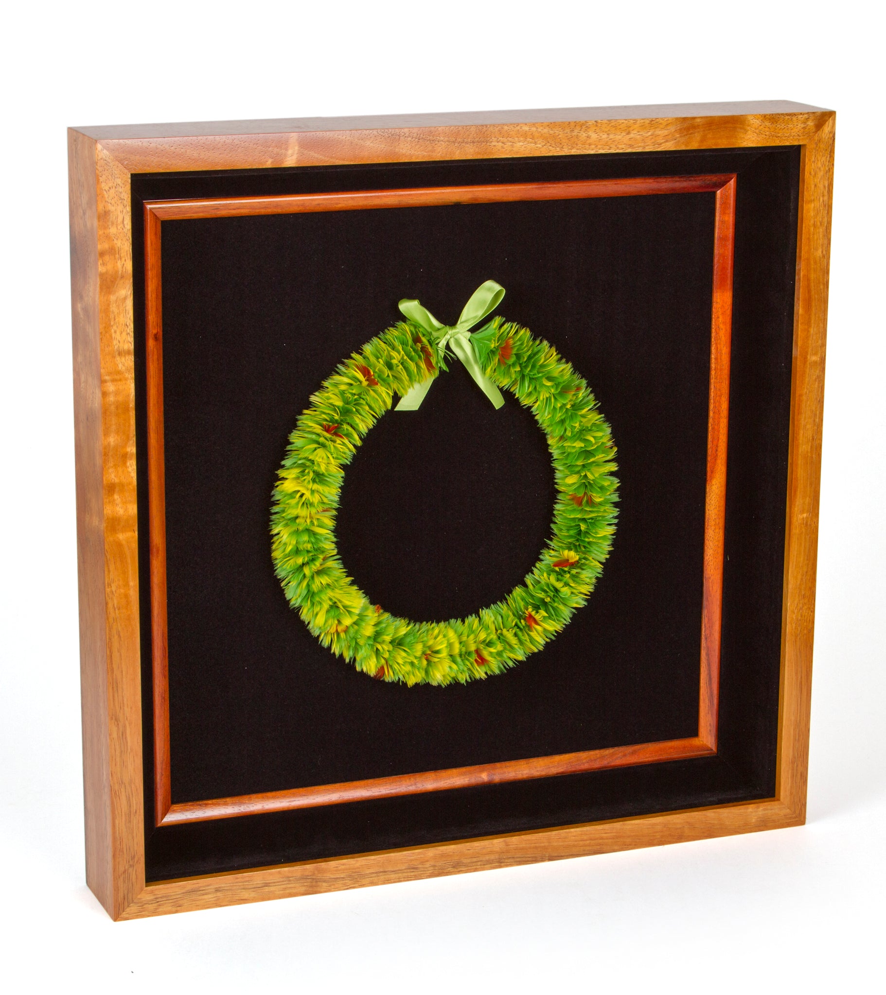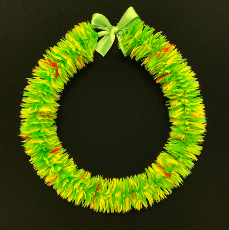 ハワイアン・フェザーレイの達人、ボリス・ケカイウルイカヒキナ・フアンが、この美しいハワイアン・フェザーレイを制作します。彼は、故アンティ・メアリー・ルー・ケクエワという著名なフェザーレイ職人から受け継いだハワイの古来の技法を用い、一枚一枚のフェザーを手作業で結び付けています。