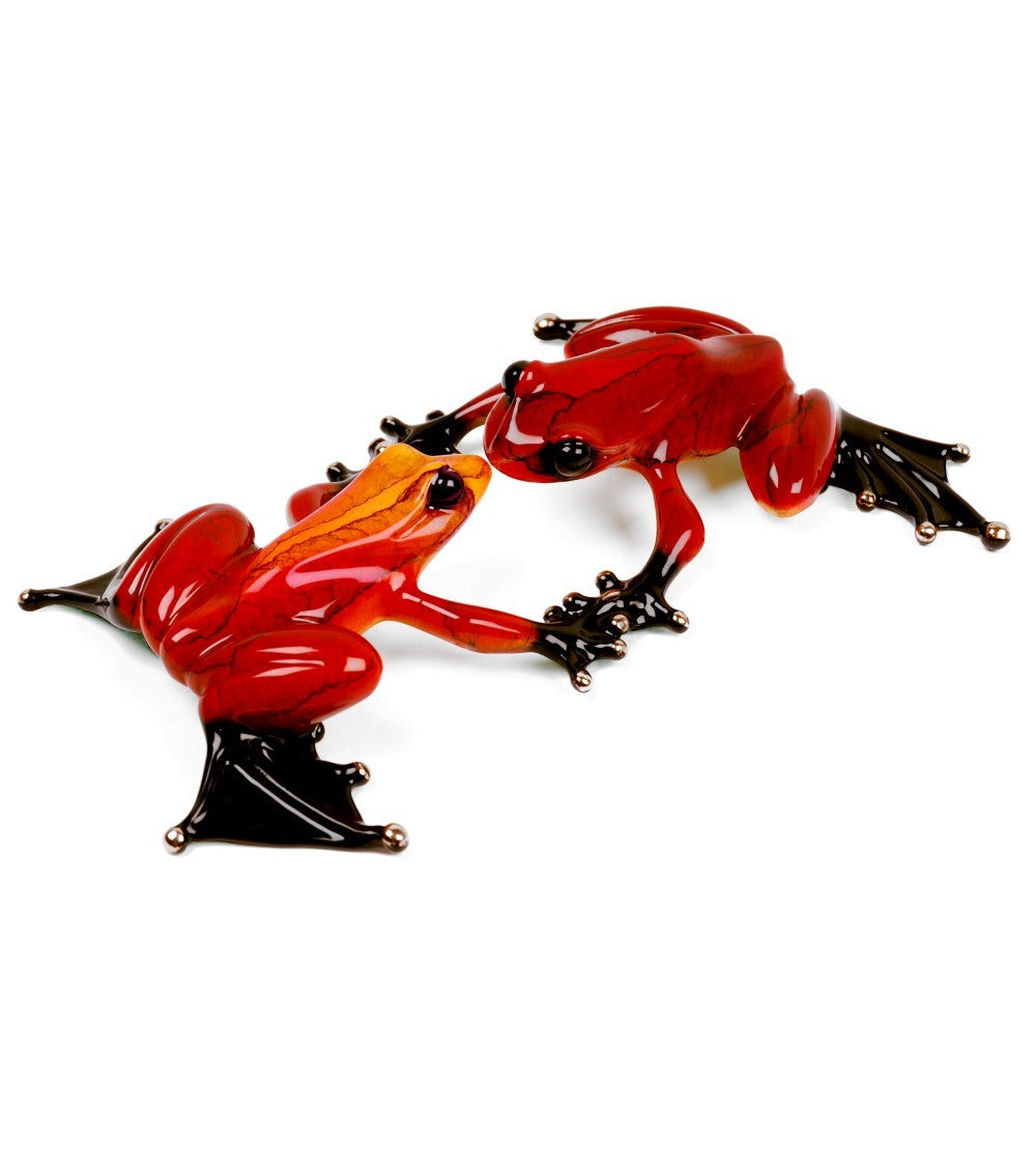 イギリスで育ったティム・コテリルは、カエル、イモリ、ヒキガエルを求めて緑豊かな田園地帯を歩き回っていました。1990年にカリフォルニア州ベニスに誘われ、ティムはそこでお気に入りの両生類のブロンズ像を作り始めました。彼は、人間と同じように、カエルにはそれぞれ個性と気質があると信じています。世界中にティムのコレクターがおり、彼らは様々な種類のカエルを集めています。アジア文化ではカエルは幸運を呼ぶと信じられており、実際、ティムのカエルを飼うと運気が上がったという人もいます。それぞれのカエルには、アーティスト自身による真贋証明書が付属しています。