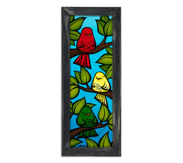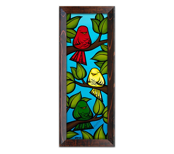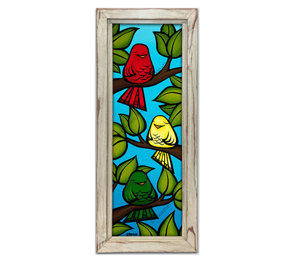 3羽の鳥が純粋で真実のメロディーを奏でる、この気まぐれでカラフルな絵があれば、何も心配する必要はありません。赤、黄、緑で描かれたこの鳥たちと一緒に、ラスタファリアン運動に参加しましょう。