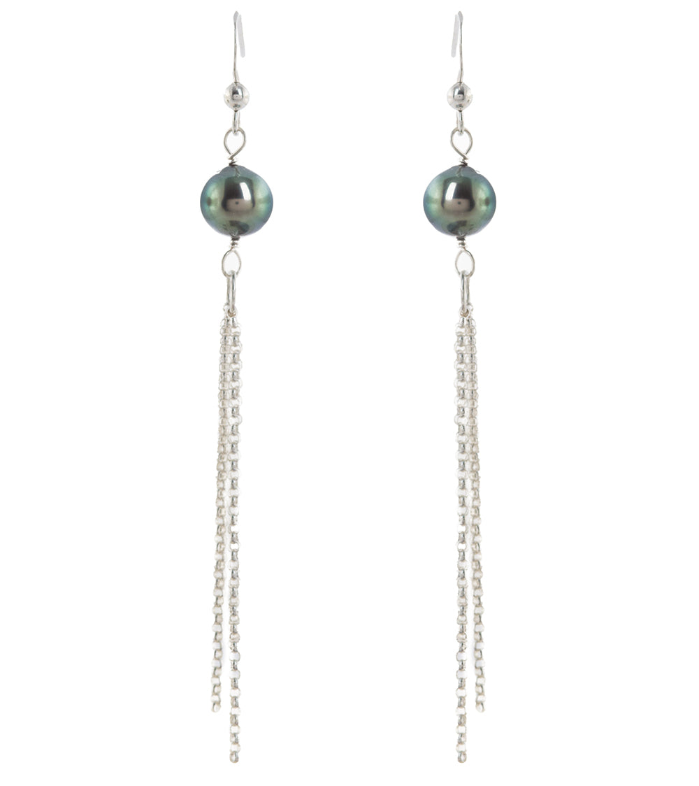 タヒチアンパール ウォーターフォール ドロップイヤリング - スターリングシルバー