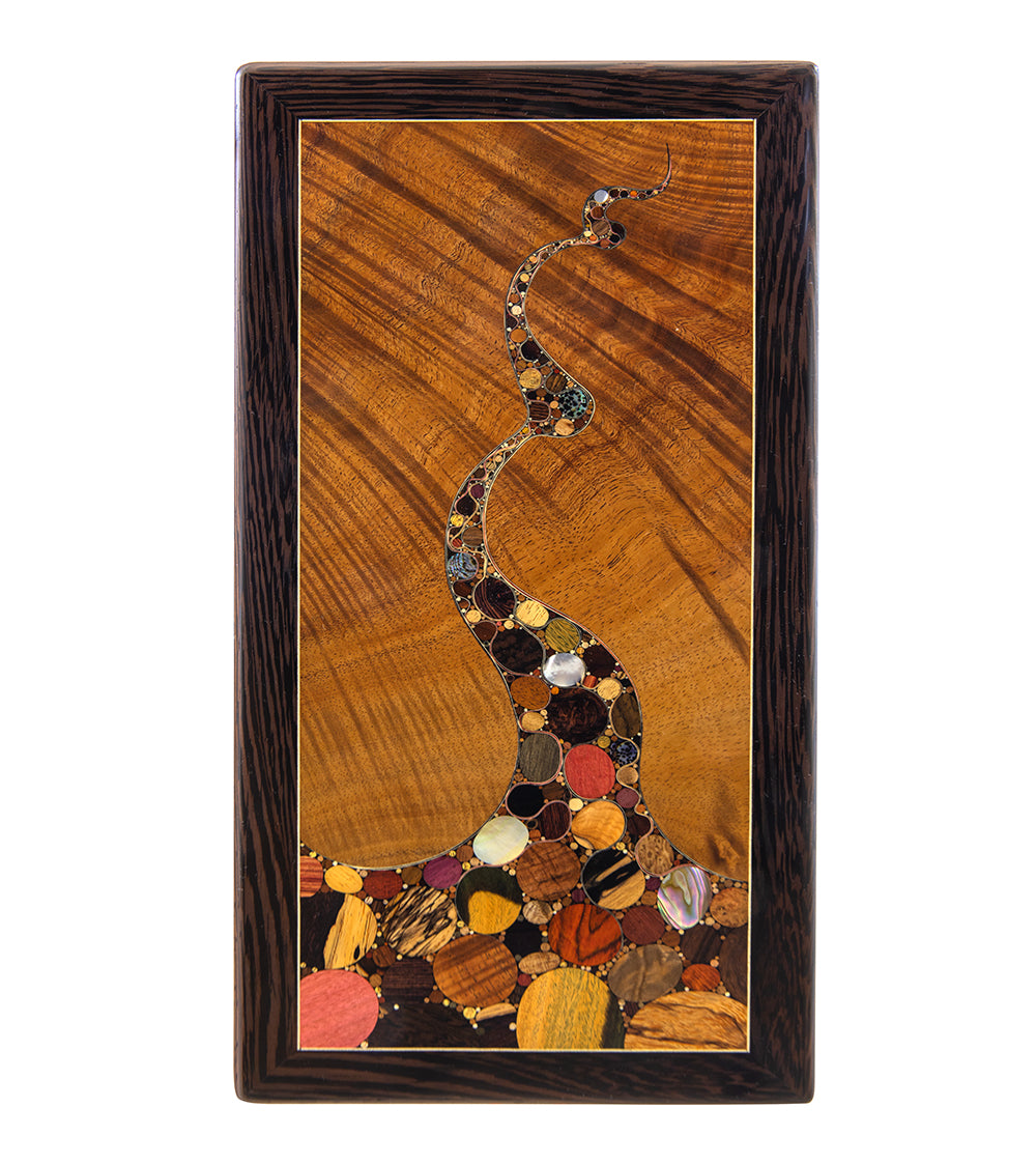 クリス・キャントウェル氏の木工技術を特集できることを光栄に思います。クリス氏は、アメリカを代表する木象嵌デザインを専門とするアーティストの一人です。彼のアプローチは非伝統的で、作品の一つ一つが他に類を見ないものです。