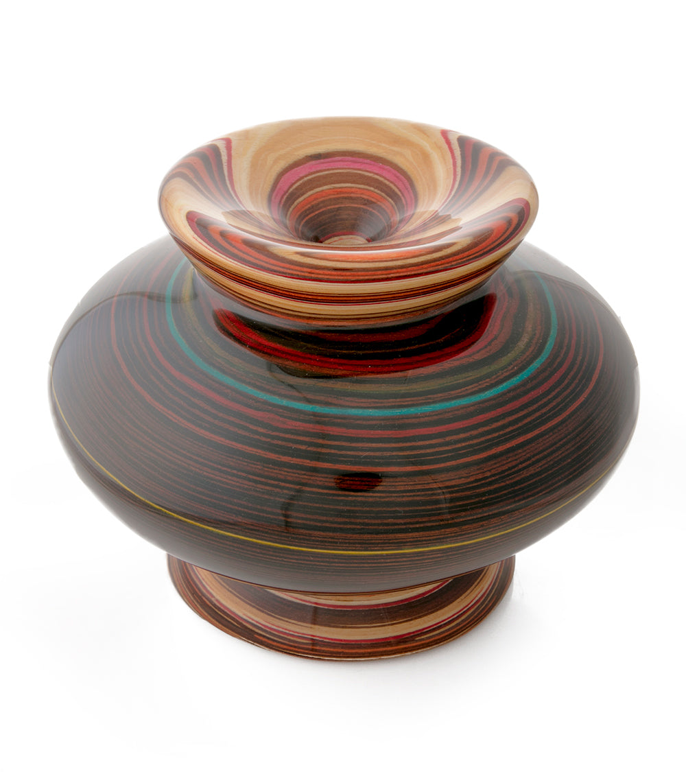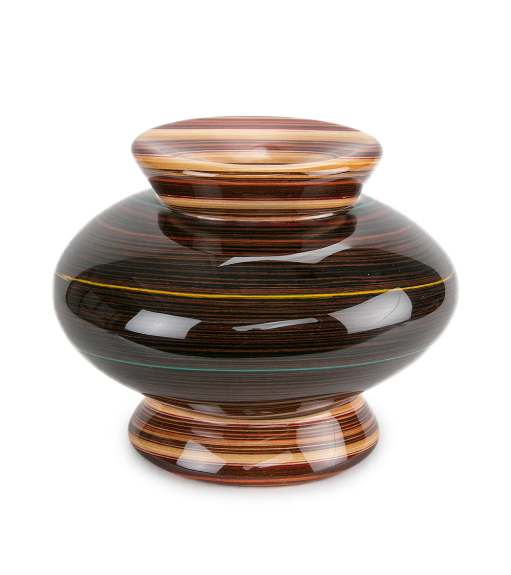 ロック・クロスは、古典的な木工技術と現代的なフォルムを融合させた独自のアプローチで、現代家具デザインでロスコー賞を受賞しています。カリフォルニア出身のロックと妻は、20年以上ハワイに住んでいます。柔らかなライン、官能的な曲線、そして躍動感は、18世紀初頭から高級家具職人によって用いられてきた積層硬材ベニアの技法によって実現されています。同様の技法は、トーマス・チッペンデールの椅子のスラットや、フランク・ロイド・ライト、マルセル・ブロイヤー、チャールズ・イームズといった巨匠たちの作品にも見られます。ロックが生み出す優美で自由な動きのあるオブジェは、「家具を芸術として」というコンセプトを体現しています。ロックは、アフリカ産のオベチー、イタリア産のメープル、フィンランド産のバーチなど、世界中から厳選された最高級のエキゾチックな木材から作品を作り上げます。これらの美しい木材の薄い層は、皮を剥がされて乾燥され、時には2種類以上の対照的な顔料で着色されます。そして、これらの要素が組み合わされ、色と木目の層が交互に重なり合います。ロックは、それぞれのデザインを手作業で彫刻し、形と色のしなやかな模様を浮かび上がらせます。最後に、10回以上の保護コーティングを施して完成させます。ロッククロスの正規代理店であることを大変嬉しく思います。ウェブサイトに掲載されている商品や、特注品についてご興味がございましたら、お気軽にお問い合わせください。在庫のある商品は1週間以内にお届けいたしますが、ほとんどの商品は受注生産のため、約8~12週間かかります。