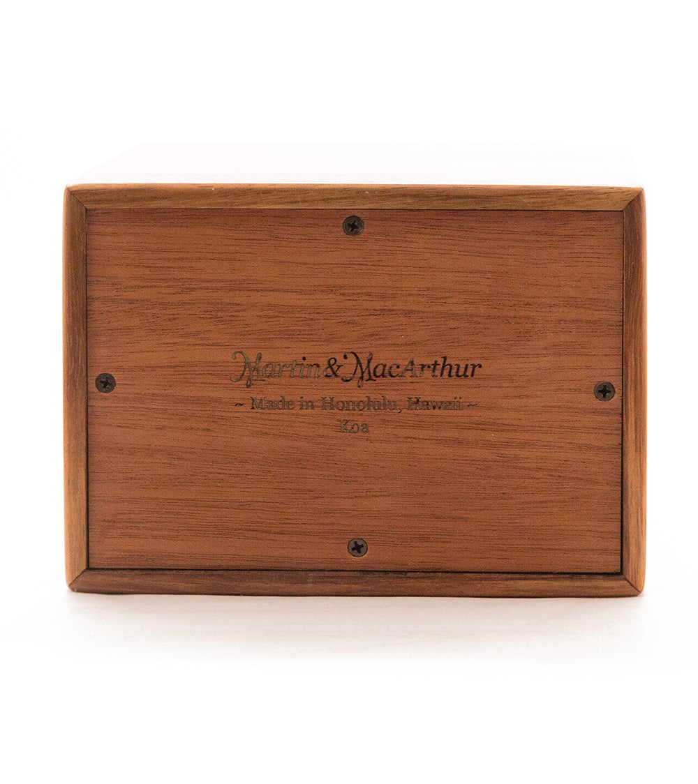 Our Koa Vertical Urn is made with an elegant, timeless style that is sure to convey honor and pride. Our urn is made in Hawaii by our own craftsmen, local kama’aina who grew up in the community and know the true meaning of ohana and aloha.