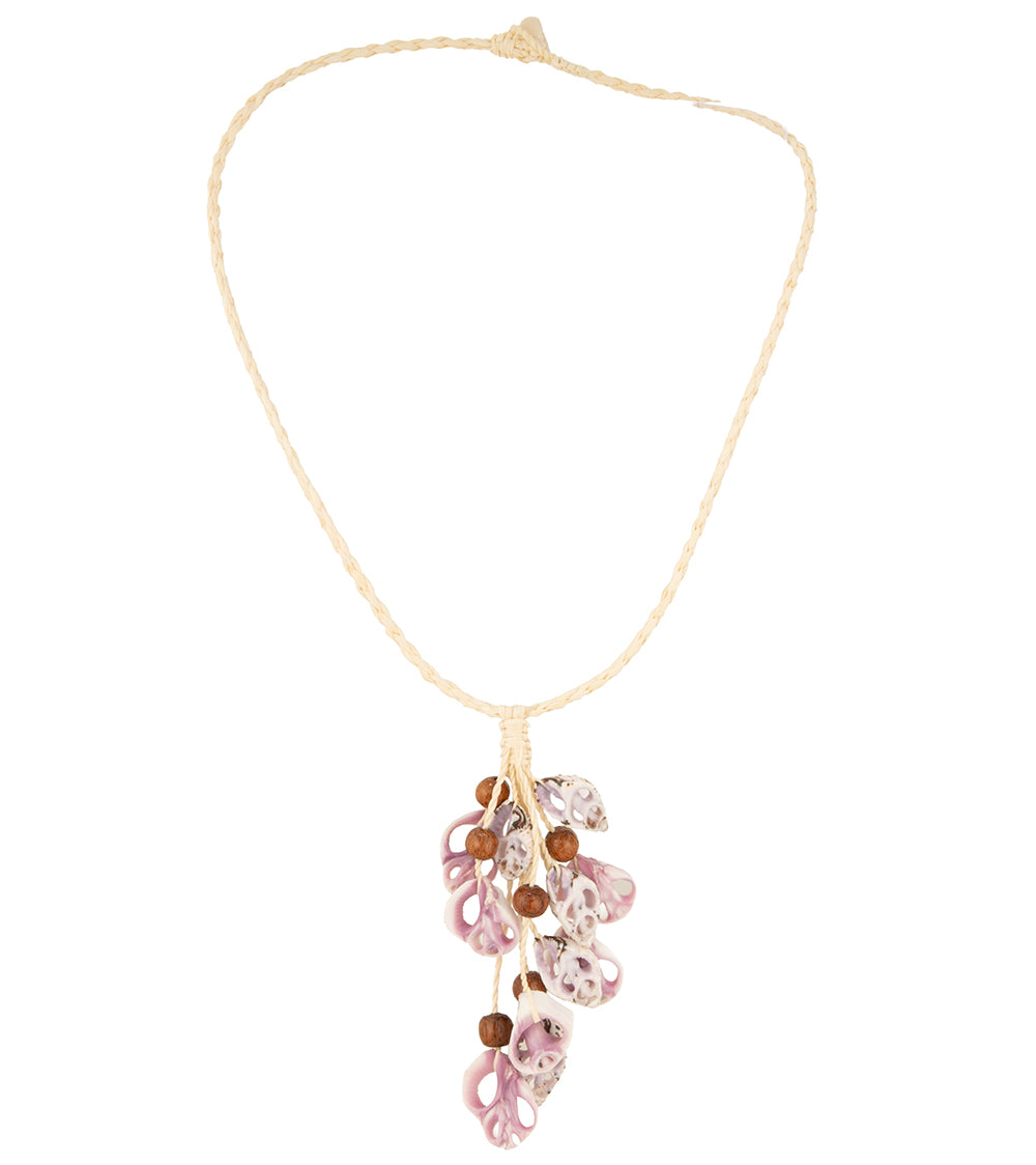 Lalepa Williams creates fine jewelry with exotic Tahitian shells. Lalepa was born and raised in the small town of Paia, Maui. He says his design sensibility came from his Hawaii roots. Lalepa has lived in Tahiti for the past 30 years, finding individual artisans who work out of their homes creating intricate shell jewelry strung on niau fiber woven from coconut shoots.