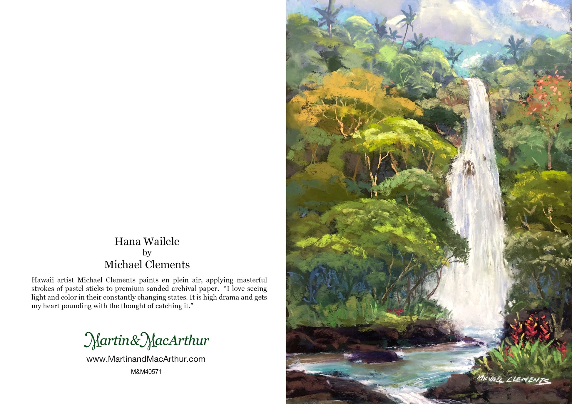 Martin & MacArthur greeting cards feature the paintings of the renowned artists in our galleries. We are proud to promote contemporary local Hawaii artists who capture the beauty of Hawaii in their own special way. Each card is blank inside so that it can be used for any occasion. All cards come with an envelop for you convenience.