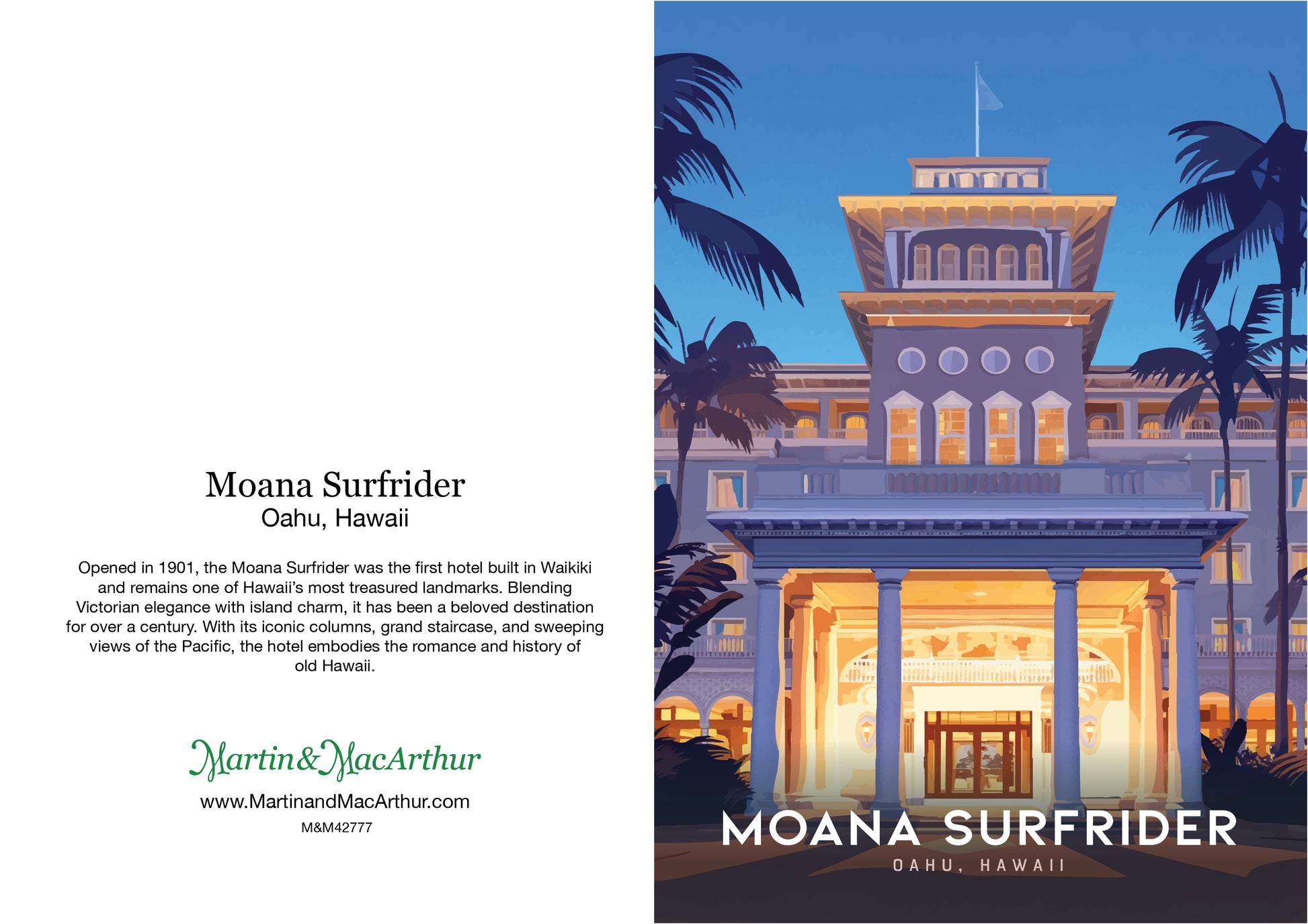 Greeting Card "Moana Surfrider, Oahu" Hawaii Travel Art
