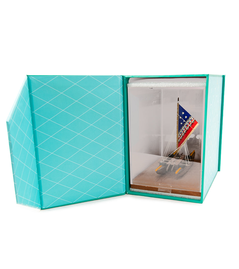 Through dedicated research Francis has become a legitimate expert on the making of ancient Hawaiian craft, especially some of the more colorful canoes of the early twentieth century. Francis has chosen to use no paints in his fine wooden models but rather to inlay beautiful naturally colored woods at painstaking effort in their stead using Koa, Milo, Ulu (Breadfruit), Lemonwood, and Primavera, as well as Ebony, Cocobolo, and exotic Tamarind wood.