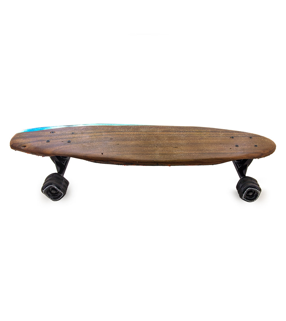 Hawaii artist Christian remembers riding skateboards as far back as when he first learned to walk. He creates beautiful Koa long boards with resin accents inspired by his other passion -- surfing.
