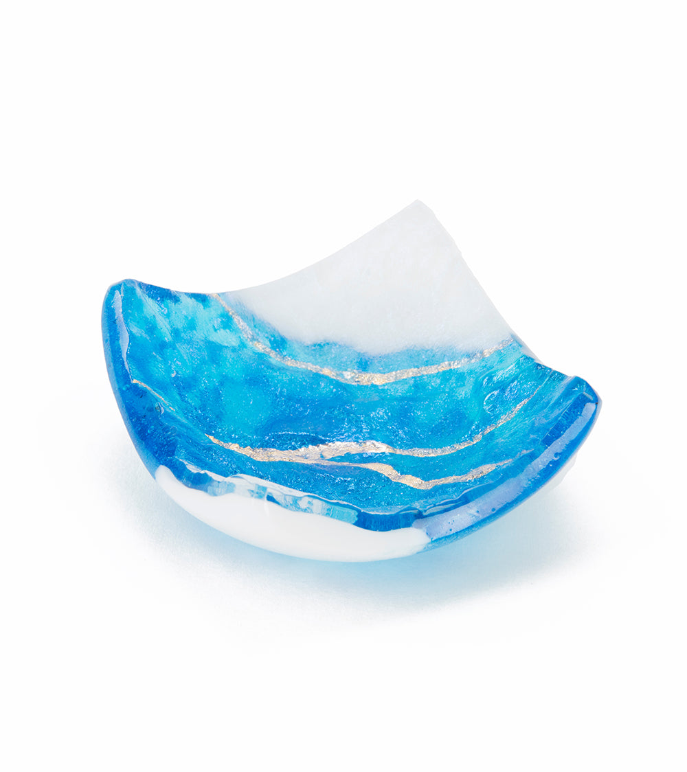 3" x 3" Lava Glass White Aqua Tray by Marian Fieldson