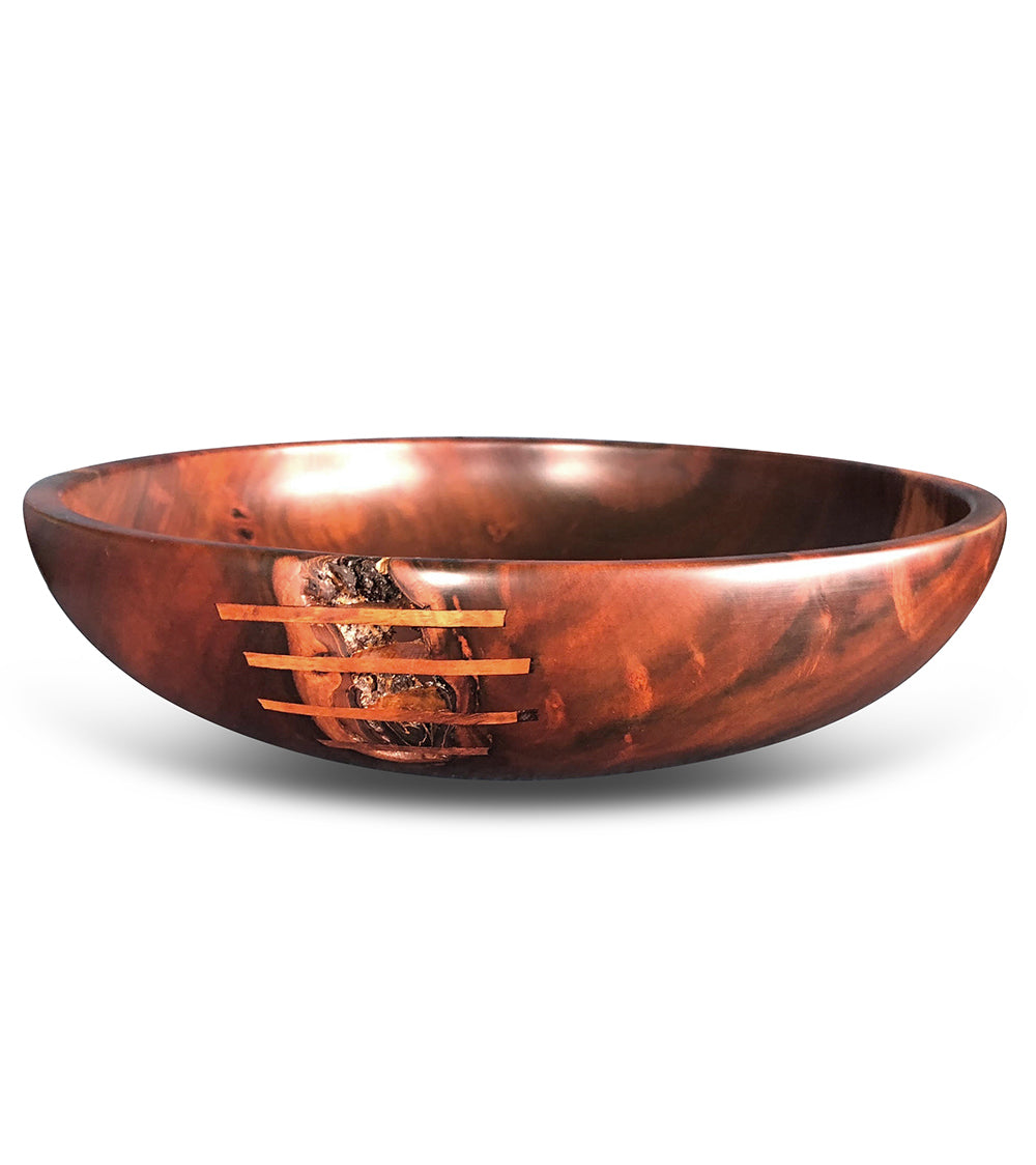 All of Aaron’s works are made from previously felled Hawaiian trees. Aaron likes working on a lathe because he “works from the center of the log both physically and spiritually... transforming it into a finely finished and cherished object.”