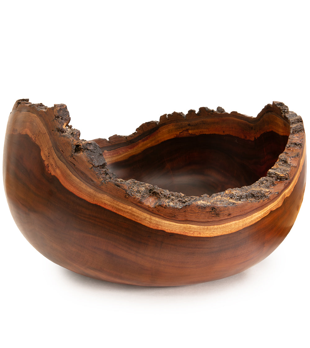 All of Aaron’s works are made from previously felled Hawaiian trees. Aaron likes working on a lathe because he “works from the center of the log both physically and spiritually... transforming it into a finely finished and cherished object.”