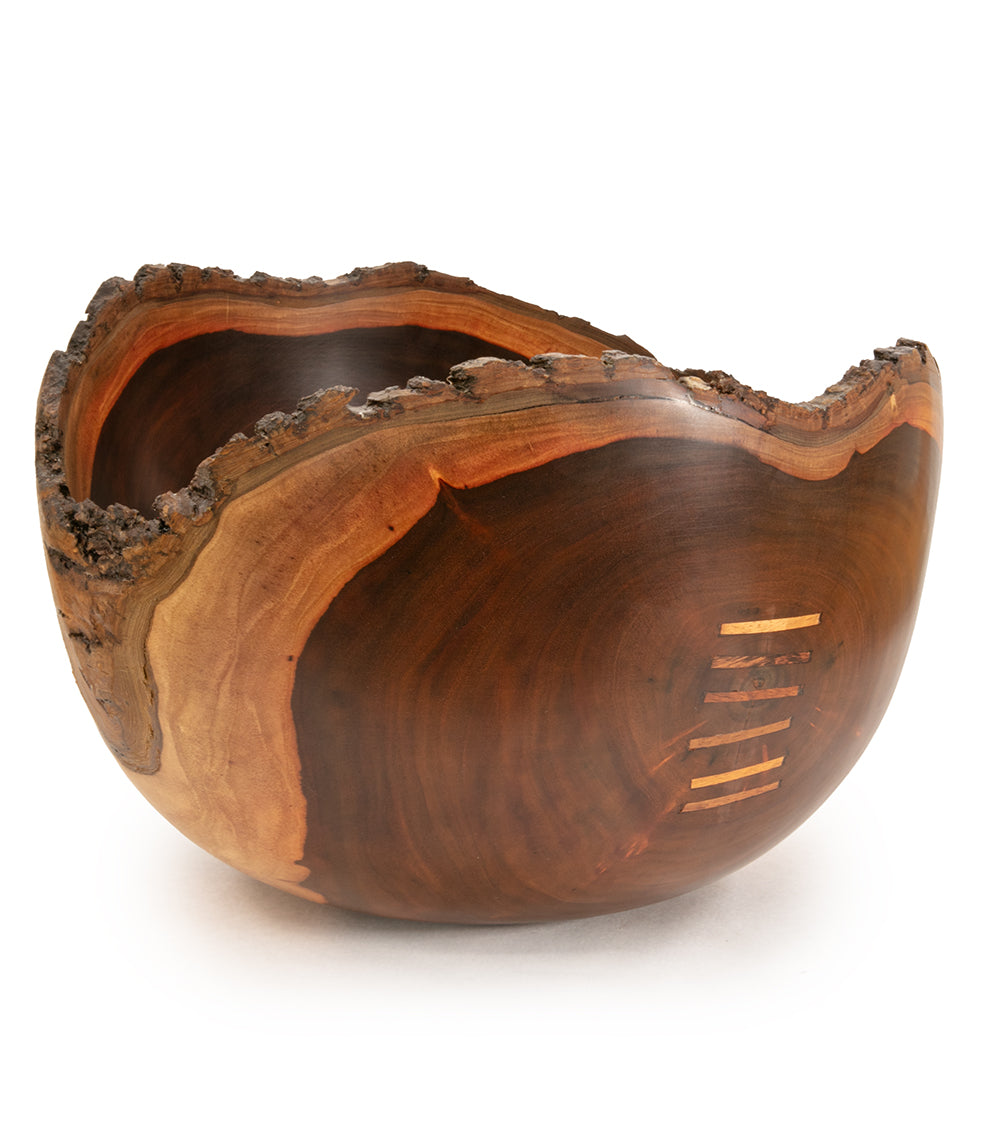 All of Aaron’s works are made from previously felled Hawaiian trees. Aaron likes working on a lathe because he “works from the center of the log both physically and spiritually... transforming it into a finely finished and cherished object.”
