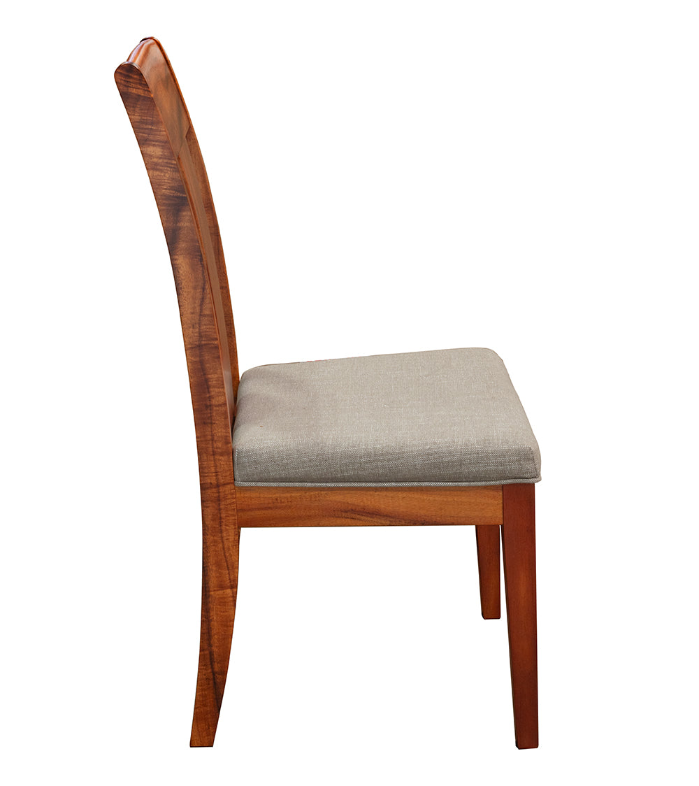 We designed our Moana Dining Chairs to highlight the beauty of Koa. The gently arched backrest shows the rich grain and color of highly figured Koa. The backrest is slightly higher than most dining chairs to create a more elegant, refined style. This dining chair style is available with or without arms. The seat is contoured perfectly to and allow you to comfortably enjoy an evening of dining pleasure. We can create seat cushions of any fabric we have available in our wide assortment of colors and styles. Or, you choose your own fabric and send it to us to create the seat cushions.