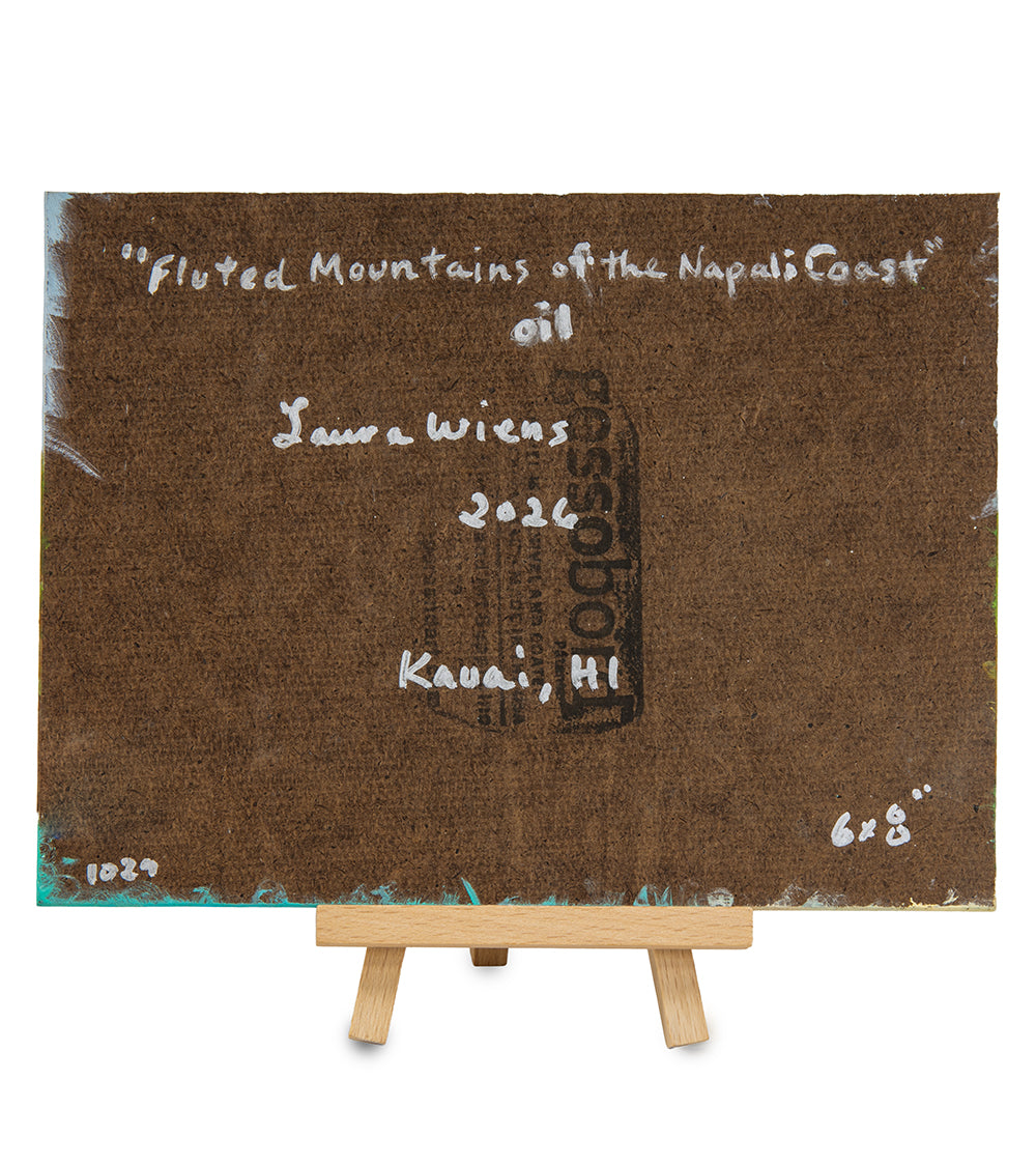 Original Oil Painting "Fluted Mountains of the Napali Coast 1029" with Table-top Easel by Laura Wiens