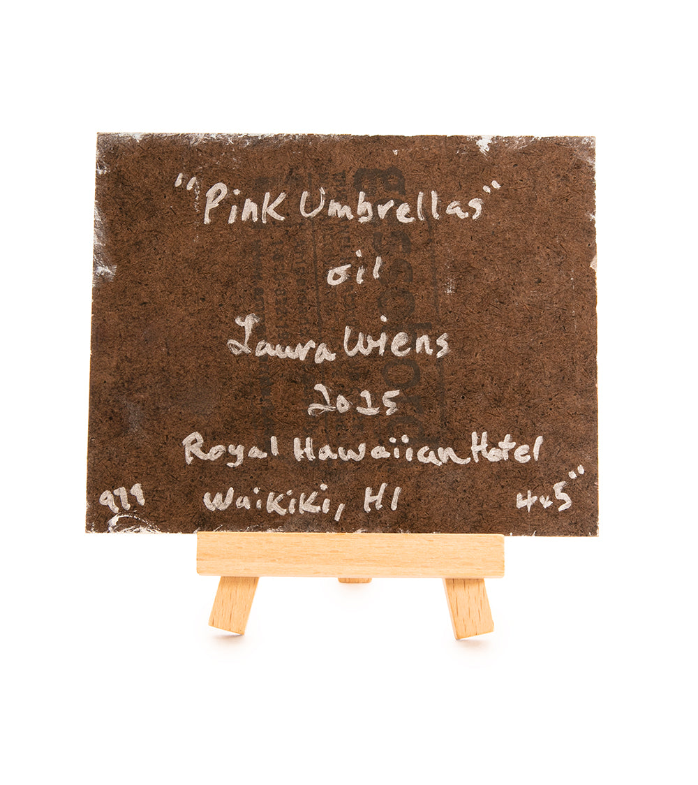 Original Oil Painting "Pink Umbrellas 979" with Table-top Easel by Laura Wiens