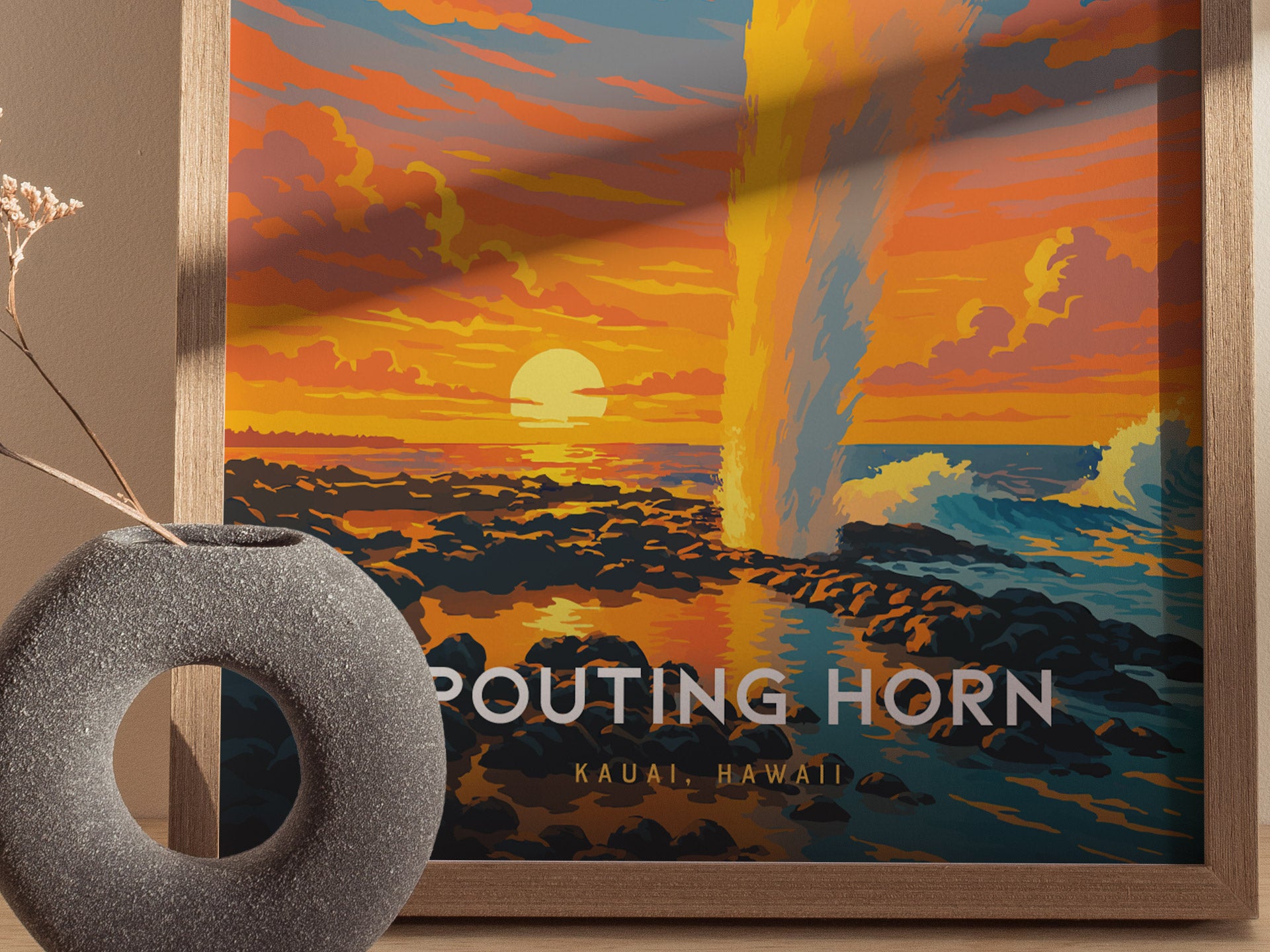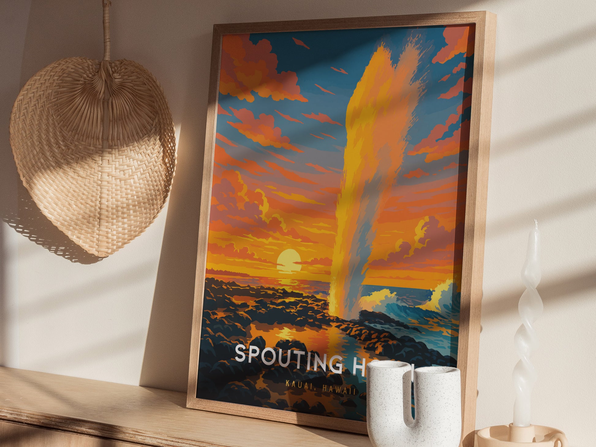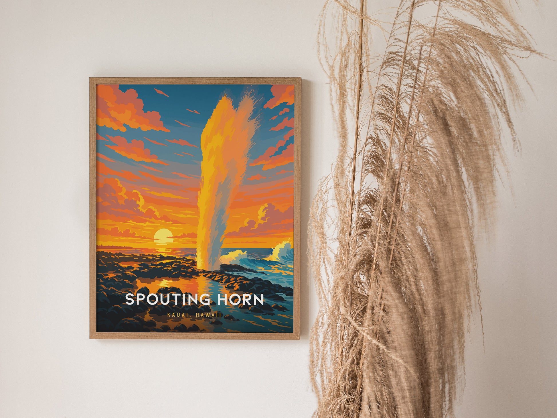 Spouting Horn Poster – Kauai’s Natural Wonder in Bold Sunset Color