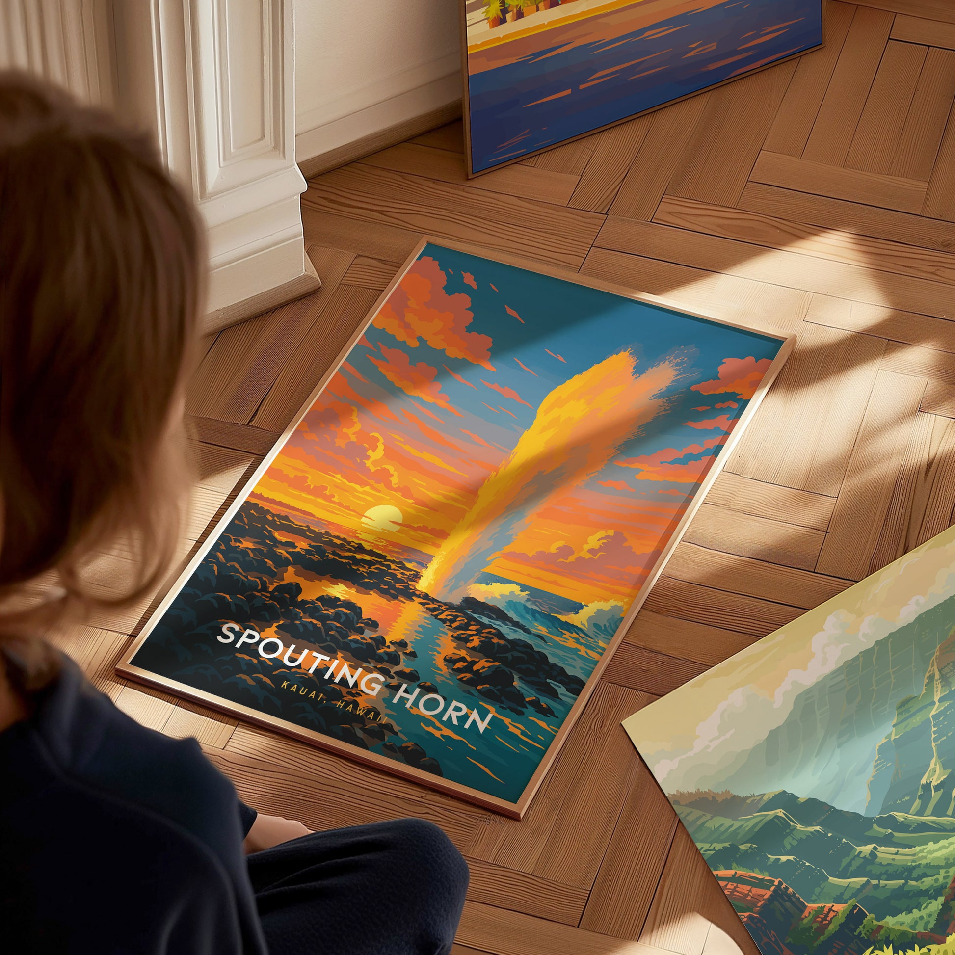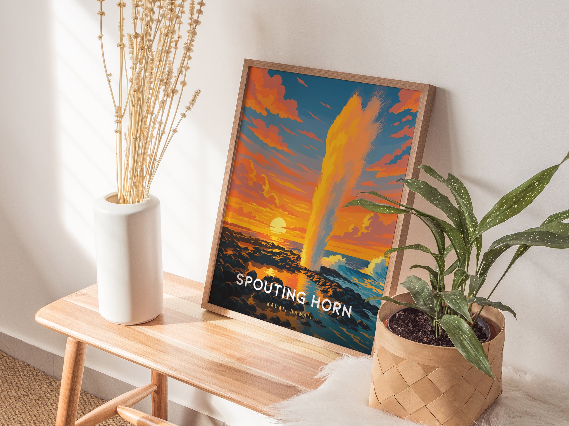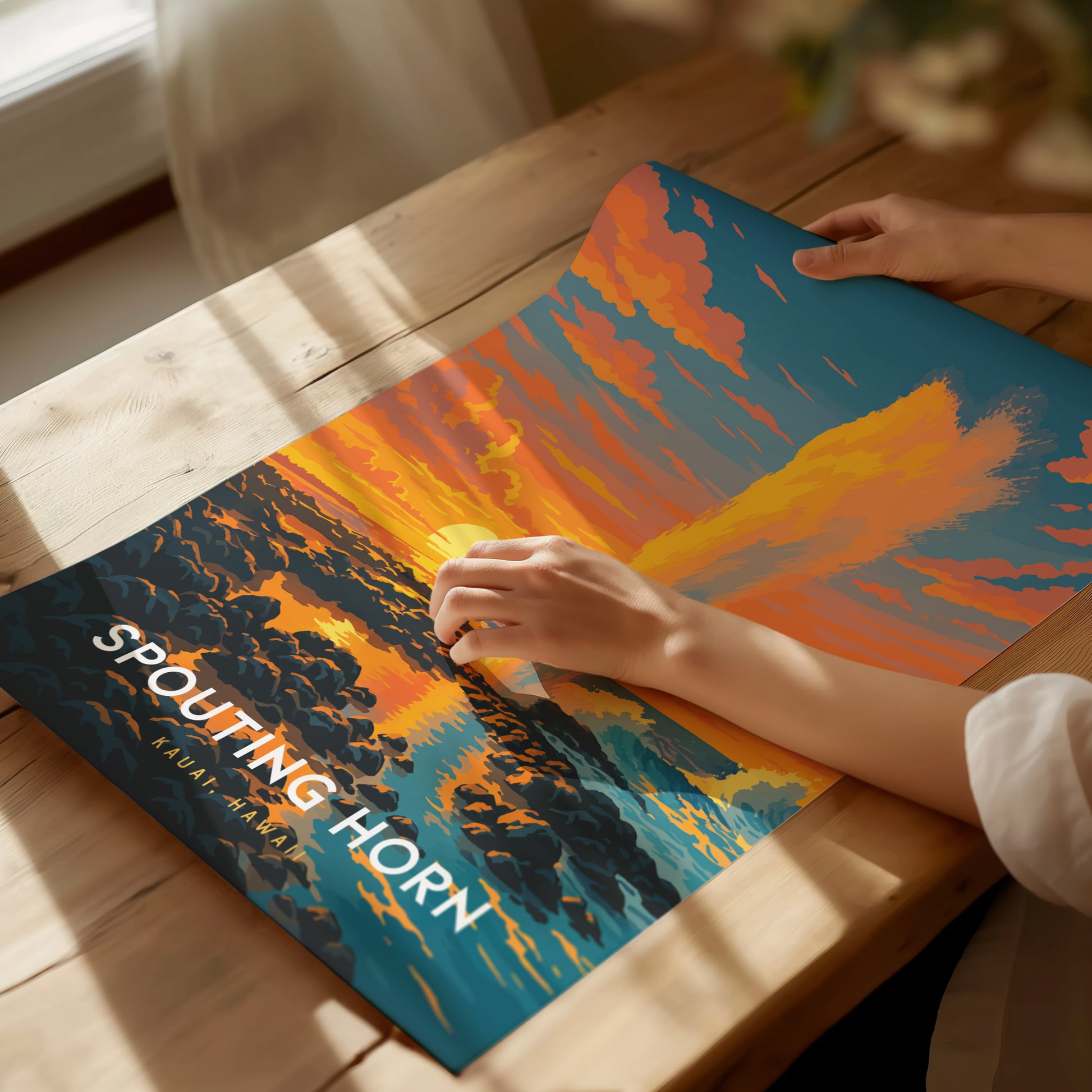 Spouting Horn Poster – Kauai’s Natural Wonder in Bold Sunset Color