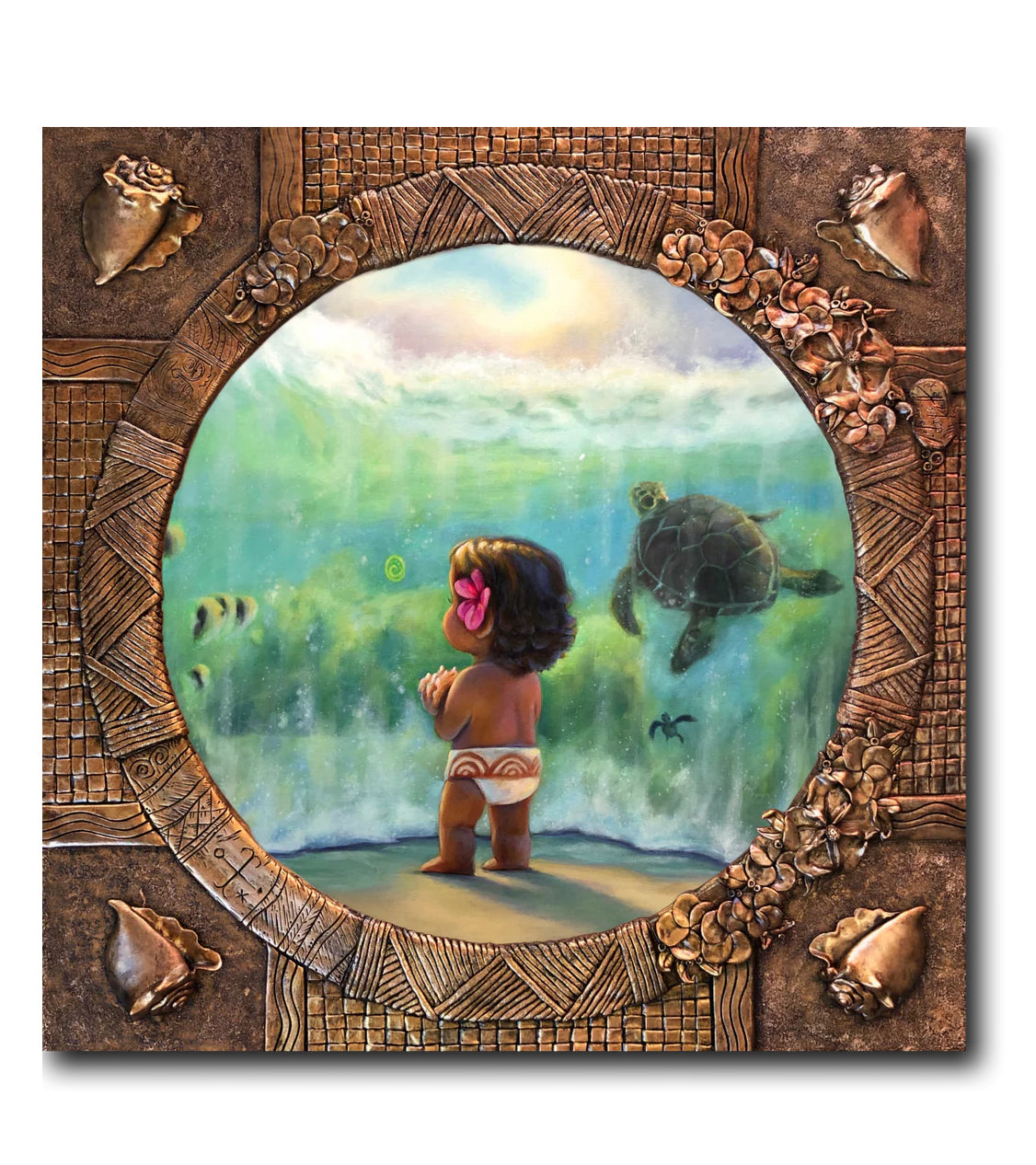 From my limited edition collection comes these premium-quality reproductions of my Disney Fine Art™ original: The Ocean Calls You. Painting is printed on specialty canvas and placed in a hand-painted, aged copper resin frame. Each piece is numbered, hand-signed, and ready to hang.