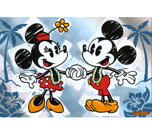 After numerous gallery shows in Los Angeles and private commissions, he has now combined his unique style to that most American of symbols, MICKEY MOUSE. Along with a series of classic lobby card paintings, he has also created a performance piece that has him painting a large canvas of our favorite Disney characters in a matter of minutes.