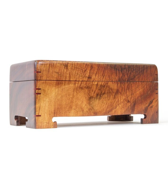 Local Oahu craftsman Roy Tsumoto creates stunning Koa jewelry boxes that have been the most popular with our customers for over 10 years. Just look at each of Roy's boxes and you can see why-- Roy is meticulous in the detailed craftsmanship of each piece. His trademark mahogany splines on the corners demonstrate the fine craftsmanship that will be appreciated for generations. We are proud that Roy features his boxes exclusively at Martin & MacArthur.