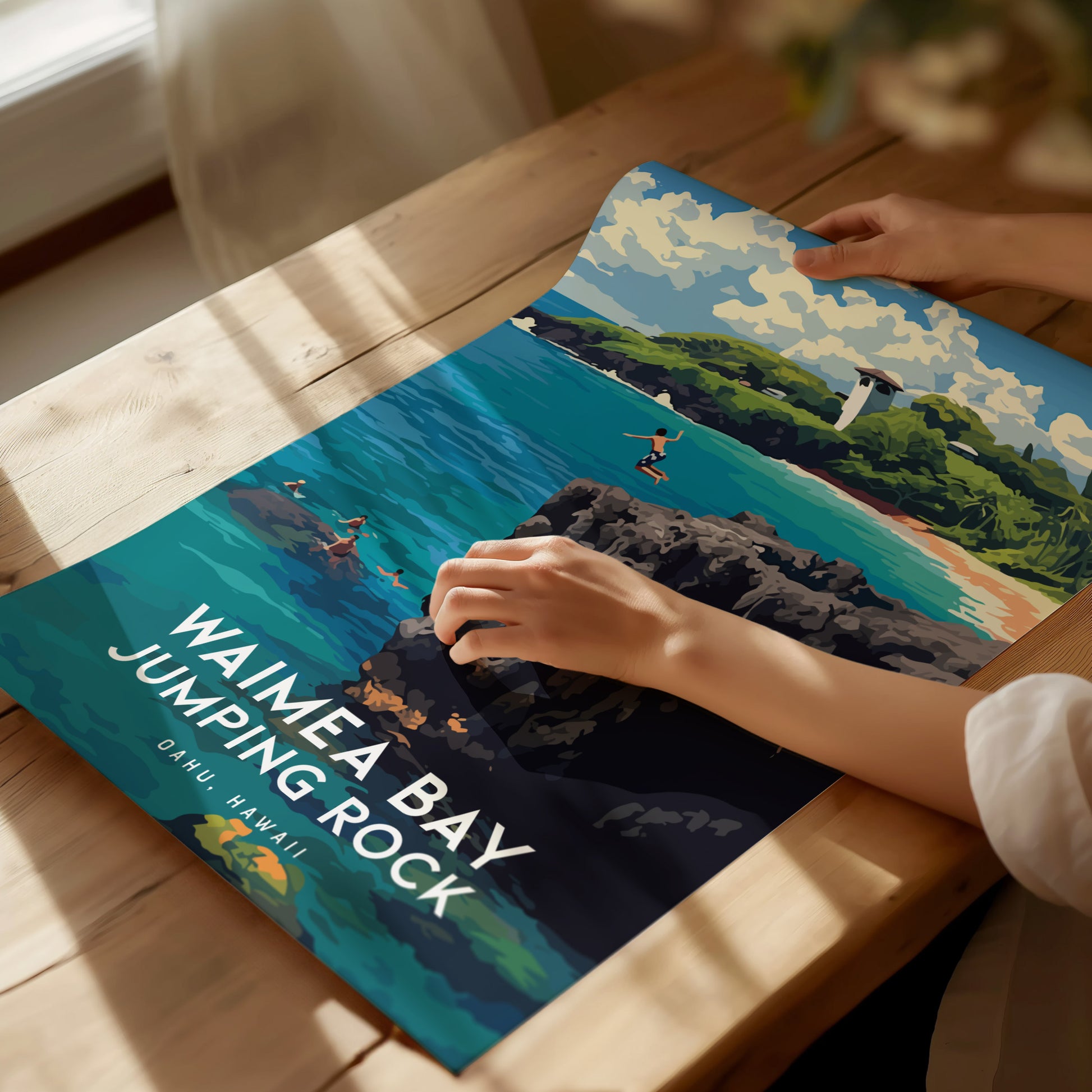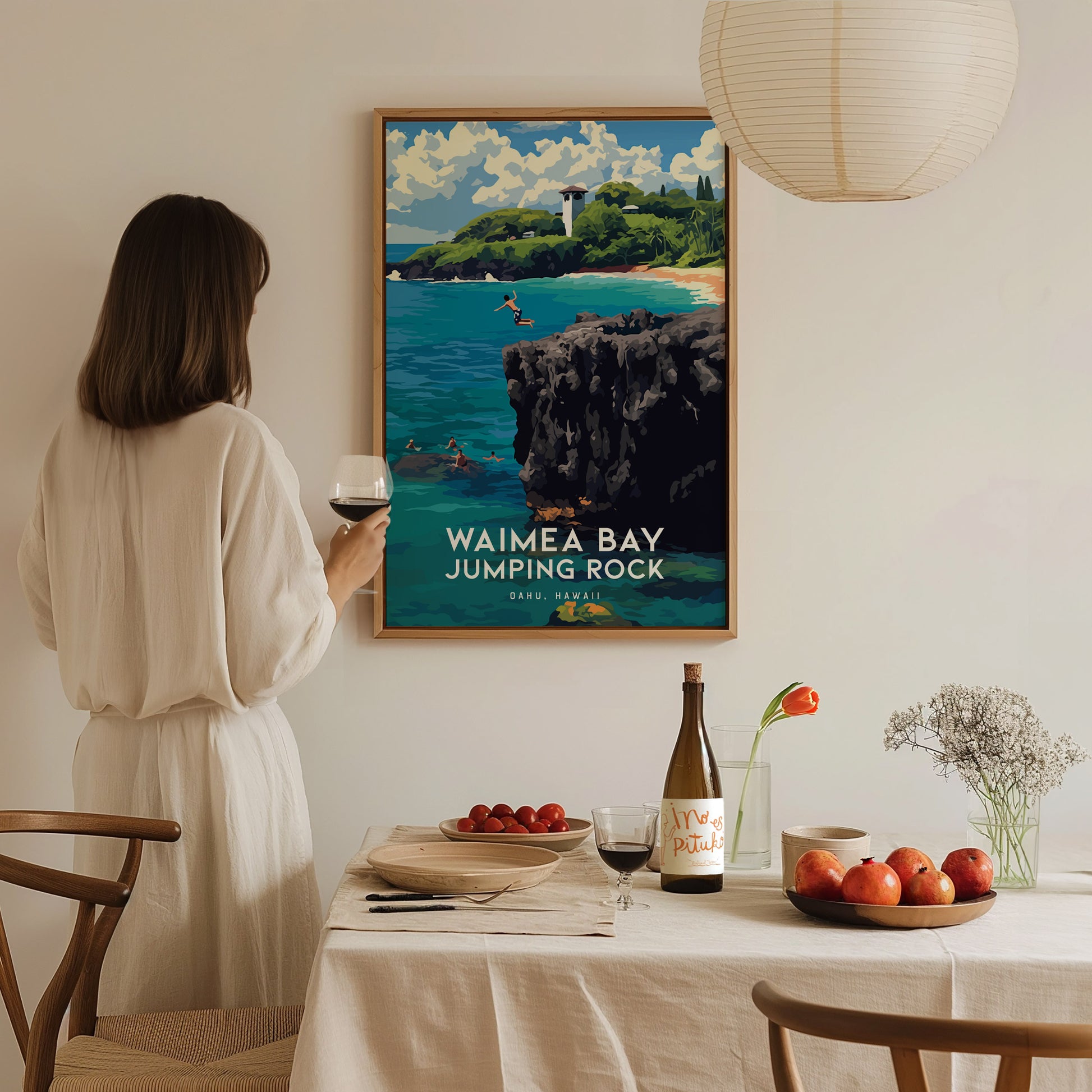 Waimea Bay Jumping Rock Poster – A Leap into Paradise